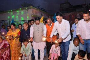 रायपुर – दीपावली के पावन अवसर पर आज दुर्ग के शक्तिनगर स्थित शासकीय प्राथमिक एवं पूर्व माध्यमिक शाला में “विष्णु के दिया” कार्यक्रम का भव्य आयोजन किया गया। इस अवसर पर प्रदेश के शिक्षा, ग्रामोद्योग एवं विधि विधायी मंत्री श्री गजेन्द्र यादव ने बच्चों के साथ दीप जलाकर और फटाके फोड़कर दीपावली की खुशियाँ साझा कीं। मुख्यमंत्री श्री विष्णुदेव साय के मार्गदर्शन में आयोजित इस अनूठे आयोजन में मंत्री श्री यादव ने बच्चों संग दीपोत्सव मनाकर शिक्षा और संस्कृति का सुंदर संगम प्रस्तुत किया।