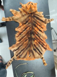 *विवरणः-* गरियाबंद पुलिस के वरिष्ठ अधिकारियों के द्वारा समस्त थाना प्रभारियों को गांजा, हीरा, वन्य जीव की अवैध परिवहन एवं बिक्री पर रोक लगाने के कड़े निर्देश दिये गये थे। जिसके परिपालन में समस्त थाना प्रभारियों के द्वारा अपने-अपने थाना क्षेत्रांतर्गत मुखबीर एवं थाना पेट्रोलिंग को सक्रिय किया गया था। इसी क्रम में थाना पाण्डुका को मुखबीर सूचना मिला कि ग्राम टोईयामुडा मोड एनएच 130 सी, मेन रोड के पास दो व्यक्ति थैले में जंगली जानवर का खाल रखकर बिक्री हेतु ग्राहक की तलाश करते मोड के पास बने चबूतरा में बैठे है। कि सूचना पर थाना प्रभारी द्वारा अपनी टीम तैयार कर मुखबीर द्वारा बताये स्थान ग्राम टोईयामुडा मोड एनएच 130 सी, मेन रोड के पास पहूंचकर घेराबंदी कर रेड कार्यवाही किये दो व्यक्ति मोड के पास बने चबूतरा में संदिग्ध अवस्था में दोनों बैठे थे और दोनों के बीच में एक पुरानी इस्तेमाली रंगीन चटकदार कपडेनुमा थैला रखे थे जिसका नाम पता पूछने पर अपना-अपना नाम 1. राकेश सौरा पिता पीलाराम सौरा उम्र 35 साल निवासी लखौली थाना आरंग जिला रायपुर (छ.ग.) 2. राकेश कुमार सौरा पिता अमिताभ सौरा उम्र 22 वर्ष निवासी लखौली थाना आरंग जिला रायपुर (छ.ग.) संदेहियों की तलाशी कराने लेने के दौरान उनके कब्जे से एक पुरानी इस्तेमाली रंगीन चटकदार कपडेनुमा थैला था।