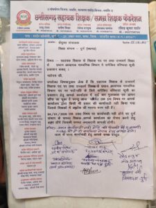 तो माध्यमिक शाला प्रधानपाठक में उसी शाला के शिक्षकों को अगर वे चाहे तो प्राथमिकता मिलनी चाहिए यह मांग फेडरेशन ने रखा है जिस पर संयुक्त संचालक ने जल्द ही कार्यवाही करने का अस्वाशन दिया कही साथ ही प्रतिनिधिमंडल ने स्पष्ठ रूप से अल्टीमेटम दिया है कि 4/1/2026 तक कार्यवाही नही होगा तो 5/1/2026 को सयुक्त संचालक दुर्ग का घेराव किया जाएगा ,प्रतिनिधिमंडल ने मुलाकात करने मनीष मिश्रा प्रांतीय संचालक,बसन्त कौशिक कार्यकारी प्रान्त अध्य्क्ष,देवेंद्र हरमुख उपाध्यक्ष ,कृष्णा वर्मा जिला अध्य्क्ष दुर्ग,पोखन साहू जिला अध्य्क्ष बेमेतरा,अजय यादव ब्लॉक अध्य्क्ष साजा,चन्द्रशेखर पटेल, रोशन महिलांगे, खिलावन ,नरेश वर्मा,खिलेश्वर देश मुख ,सतीश चन्द्राकर आदि उपस्थित हुए।