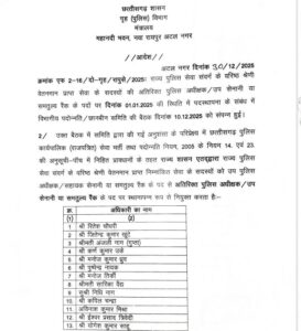 रायपुर – मुख्यमंत्री विष्णुदेव साय की अनुशंसा पर तथा उपमुख्यमंत्री एवं गृह मंत्री विजय शर्मा की विशेष पहल से राज्य पुलिस सेवा के अधिकारियों को वर्ष के अंतिम दिन एक महत्वपूर्ण सौगात मिली है। छत्तीसगढ़ शासन के गृह (पुलिस) विभाग द्वारा जारी आदेश के तहत पुलिस अधिकारियों के हित में यह निर्णय लिया गया है, जिसे पुलिस महकमे में उत्साहवर्धक कदम माना जा रहा है।