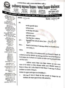 शिक्षकों के निजी मोबइल मे VSK.App अनिवार्य रूप से इंस्टाल कराये जाने के विरोध मे ज्ञापन सौंपा गया ।