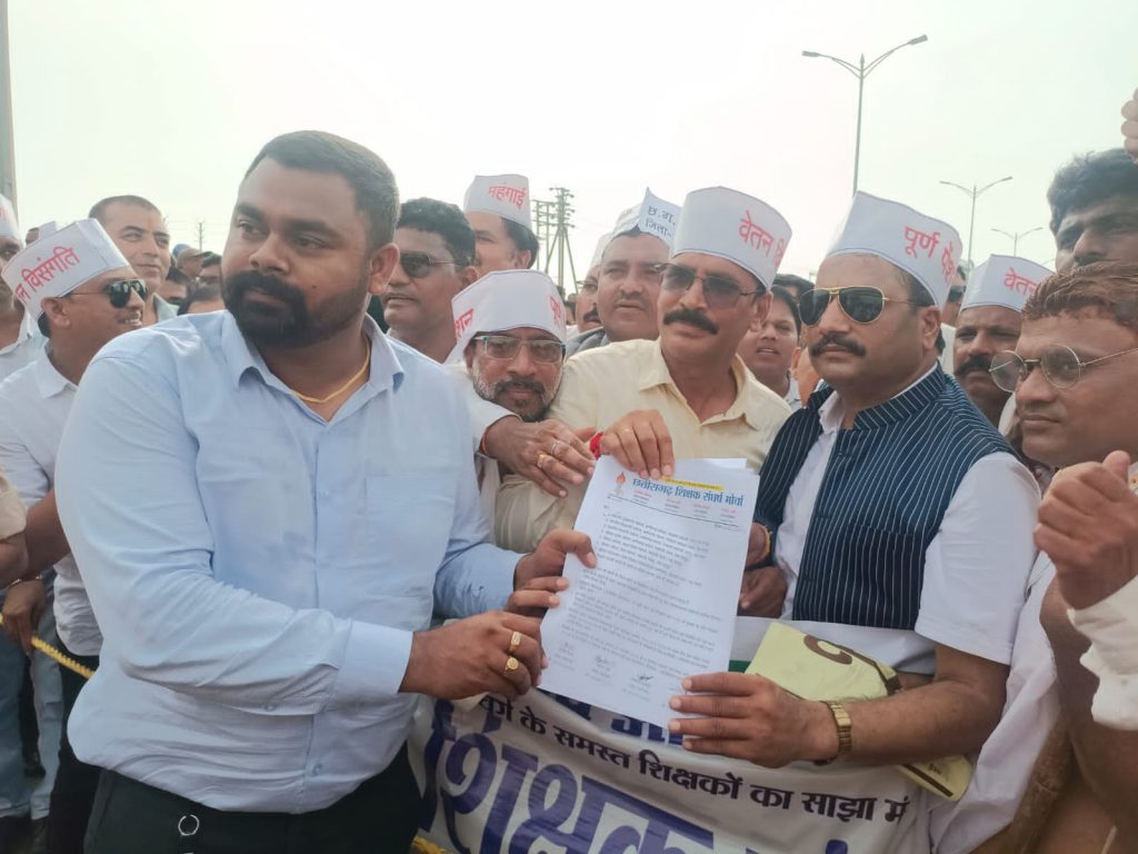 पुरानी सेवा गणना, वेतन विसंगति, क्रमोन्नति, पदोन्नति व केंद्र के समान देय तिथि से DA और HRA की मांग को लेकर शिक्षक मोर्चा ने किया सत्याग्रह से आंदोलन का आगाज़