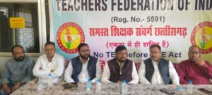 रायपुर – टीचर्स फेडरेशन ऑफ इंडिया की राज्य इकाई द्वारा छत्तीसगढ़ प्रदेश के सभी संगठनों का एक मंच पर सामूहिक संघर्ष हेतु प्रयास किया जाना है इसी तारतम्य में विभिन्न संगठनों द्वारा प्रदेश अध्यक्षों का जुड़ाव महसूस किया गया|टेट परीक्षा के विषय में शिक्षक फेडरेशन के प्रांतीय अध्यक्ष श्री रवीन्द्र राठौर ने बताया कि यह एक राष्ट्रीय मुद्दा है जो शिक्षकों की सेवा पर सवालिया निशान लगा दिया है