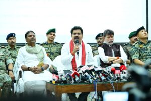 रायपुर – जगदलपुर में आयोजित प्रेस वार्ता के दौरान उपमुख्यमंत्री एवं गृह मंत्री श्री विजय शर्मा ने दृढ़ विश्वास के साथ कहा कि राज्य सरकार, केंद्रीय एजेंसियों और सुरक्षा बलों के समन्वित एवं सतत प्रयासों के परिणामस्वरूप छत्तीसगढ़ 31 मार्च 2026 तक सशस्त्र नक्सलवाद से पूर्णतः मुक्त हो जाएगा। उन्होंने कहा कि यह केवल एक प्रशासनिक उपलब्धि नहीं, बल्कि बस्तर और समूचे छत्तीसगढ़ के सामाजिक, आर्थिक और मानवीय पुनर्जागरण की दिशा में एक ऐतिहासिक परिवर्तन है। इस महत्वपूर्ण अवसर पर नारायणपुर विधायक एवं मंत्री श्री केदार कश्यप, जगदलपुर विधायक श्री किरण सिंहदेव, डीजीपी श्री अरुण देव गौतम, पुलिस महानिदेशक एंटी नक्सल ऑपरेशन श्री विवेकानंद, नक्सल उन्मूलन से जुड़े वरिष्ठ अधिकारी, एडीजी सीआरपीएफ, बस्तर कमिश्नर, आईजी सुंदरराज पी., बीजापुर के पुलिस अधीक्षक सहित विभिन्न केंद्रीय एवं राज्य सुरक्षा बलों के अधिकारी उपस्थित रहे।