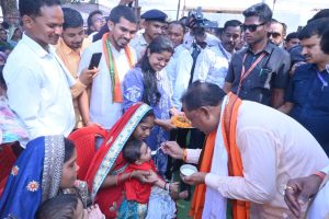 उन्होंने सभी से आवास प्लस प्लस सर्वे में शामिल होने का आग्रह किया। श्री साय ने कहा कि हमारी सरकार ने 3100 रूपये प्रति क्विंटल की दर से धान खरीदी, धान के बकाया बोनस की राशि देने और महतारी वंदन योजना के माध्यम से प्रदेश की माताओं -बहनों को आर्थिक संबल देने का काम किया है। मुख्यमंत्री ने कहा कि रामलला दर्शन योजना और मुख्यमंत्री तीर्थ दर्शन योजना के माध्यम से हम अपने प्रदेशवासियों और वृद्धजनों को तीर्थ यात्रा करवा रहे हैं। श्री साय ने शासन की जनकल्याणकारी योजनाओं की जानकारी साझा करते हुए अधिक से अधिक लोगों को इसका लाभ लेने को कहा। मुख्यमंत्री ने विभिन्न योजनाओं के हितग्राहियों को वितरित की सामग्री।