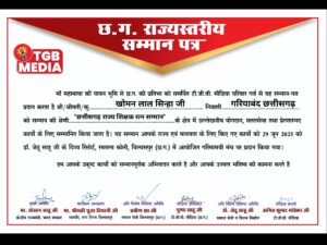 छत्तीसगढ़ राज्य स्तरीय शिक्षक सम्मान समारोह का भव्य आयोजन बिलासपुर में सम्पन्न हुआ। इस गरिमामयी अवसर पर मुख्य अतिथि के रूप में भारत सरकार के केंद्रीय राज्य मंत्री माननीय तोखन साहू जी की उपस्थिति रही। कार्यक्रम में राज्य भर से चयनित श्रेष्ठ शिक्षकों को उनके उत्कृष्ट शैक्षणिक योगदान के लिए “छत्तीसगढ़ राज्य शिक्षक रत्न पुरस्कार” से सम्मानित किया गया।इस अवसर पर सम्मानित होने वाले शिक्षकों में हमारे क्षेत्र के सम्मानित शिक्षक खोमन सिन्हा भी शामिल रहे, जिन्हें यह पुरस्कार शिक्षा के क्षेत्र में निरंतर समर्पण, नवाचार, और विद्यार्थियों के सर्वांगीण विकास हेतु किए गए प्रयासों के लिए प्रदान किया गया।