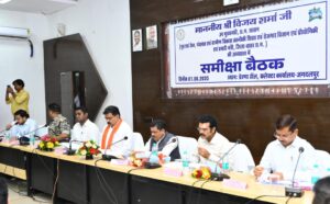 उपमुख्यमंत्री श्री शर्मा ने जल संसाधन विभाग के तहत प्रमुख बांध, नहर और जलाशयों में जलभराव की स्थिति की समीक्षा की गई। विद्युत विभाग की प्रधानमंत्री सूर्य घर योजना, ट्रांसफार्मर की उपलब्धता, आरडीएसएस योजना के तहत क्रियान्वयन की गुणवत्ता का मूल्यांकन किया गया। लोक निर्माण विभाग, ग्रामीण यांत्रिकी सेवा तथा राष्ट्रीय राजमार्ग विभाग द्वारा किए जा रहे निर्माण कार्यों और आगामी तीन माह के कार्यों की कार्ययोजना पर भी चर्चा हुई।शिक्षा विभाग द्वारा ज्ञानगुड़ी योजना के तहत नि:शुल्क कोचिंग, आईसीटी आधारित प्रशिक्षण, बहुभाषी शिक्षा, पीएम श्री स्कूलों के निर्माण, शिक्षा गुणवत्ता कार्यक्रम, मिशन 200, जीरो ड्रॉपआउट अभियान और सम्पर्क फाउंडेशन की गतिविधियों की समीक्षा की गई। आदिम जाति एवं अनुसूचित जाति विकास विभाग द्वारा छात्रावासों और छात्रवृत्तियों की स्थिति प्रस्तुत की गई। खाद्य विभाग द्वारा पीडीएस प्रणाली, धान भंडारण एवं उठाव की स्थिति की जानकारी दी गई। नगर निगम द्वारा स्वच्छ भारत मिशन शहरी, पीएम आवास योजना शहरी, भवन अनुज्ञा एवं अधोसंरचना विकास कार्यों की समीक्षा की गई। जिला व्यापार एवं उद्योग केंद्र द्वारा प्रधानमंत्री विश्वकर्मा योजना और पीएमईजीपी की प्रगति की जानकारी प्रस्तुत की गई। इसके अतिरिक्त सहकारिता, समाज कल्याण और श्रम विभाग की गतिविधियों की भी समग्र समीक्षा की गई।
