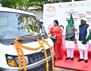 नगरीय निकायों की स्वच्छता हेतु समर्पित डोर-टू-डोर कचरा कलेक्शन वाहनों को दिखाई हरी झंडी।